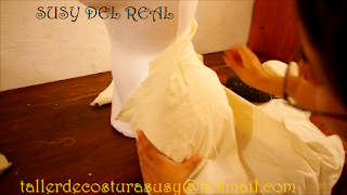 PEGAREMOS LA GUATA Y TODAS LAS PIEZAS DE LA ROPA DEL MANIQUI, NOS QUEDARA COMO UN ACOLCHADO, SIN CERRAR UNO DE LOS COSTADOS DE LA FALDA...